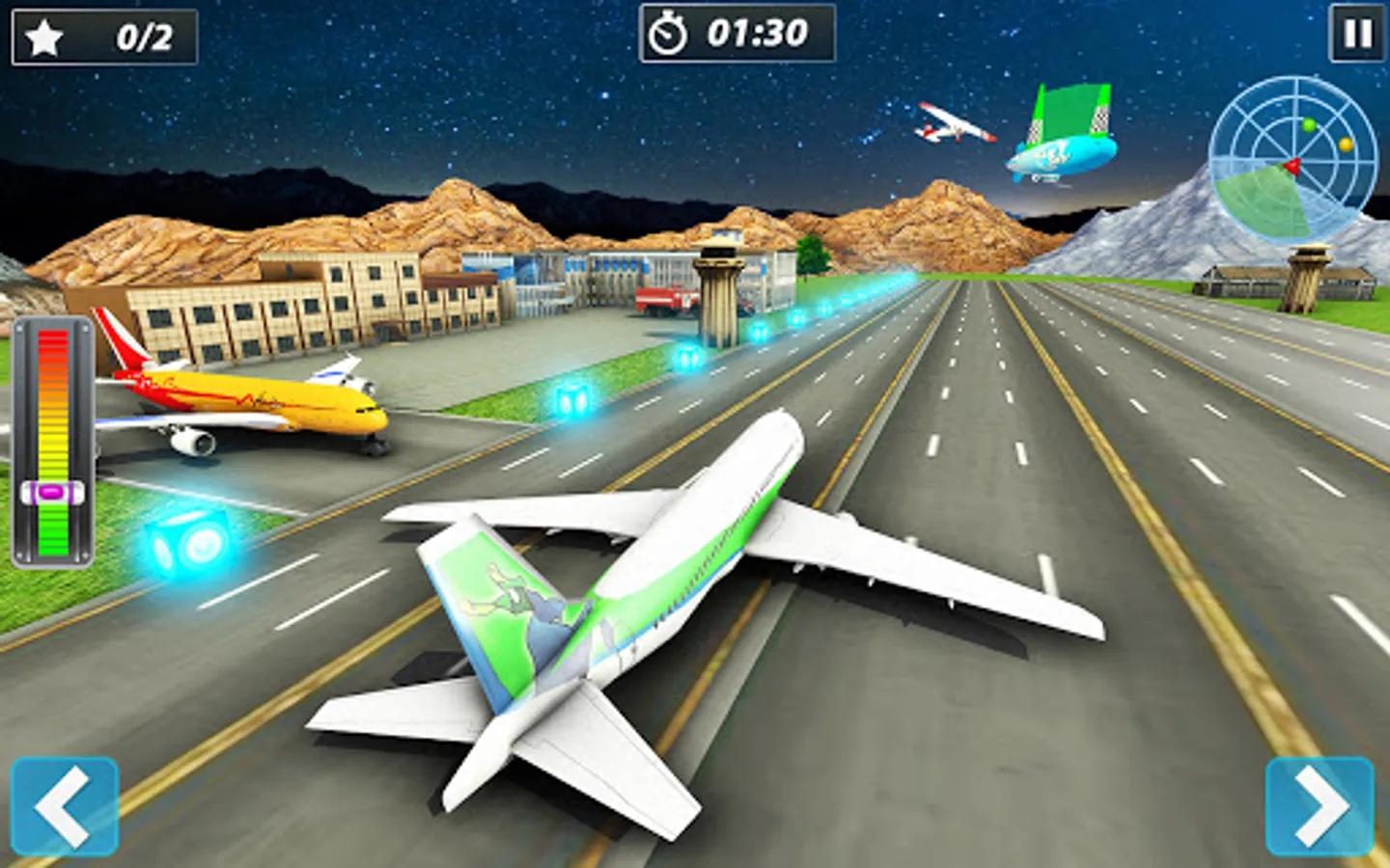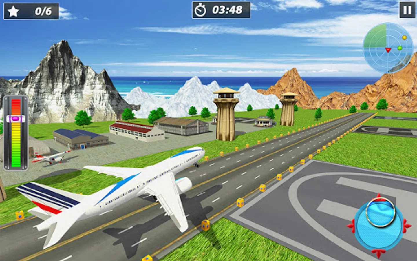 Take command of the entire airport by flying a popular modern flight plane in this ✈games 2022. Gear up your aircraft on the smooth runway in this city plane games 3d. Take care not to collide with any other flight planes that are parked nearby while running on the runway in this aeroplane games 3d. Fly off in the sky with your city airplane flight and enjoy passenger transporting in this flight pilot games. Cross the rectangles and land your flying aeroplane on the runway in this flight simulator games 3d. Park the plane in the designated parking zone without any mistake in this ✈ plane games offline. Moreover you have to decelerate the speed of your flight plane by pressing the throttle lever down while parking a plane in this free airplane game.