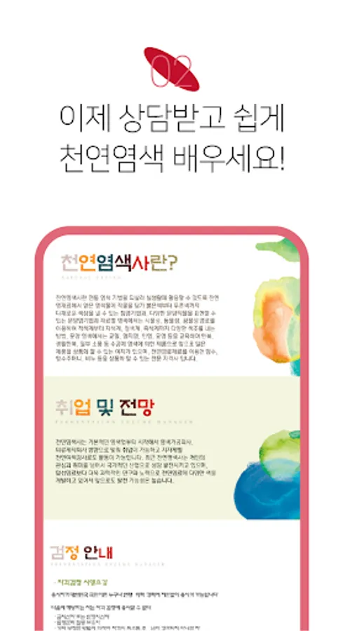 Natural dyeing is a dip-dyeing technique that can produce various colors from red to blue by soaking fabrics in dyes obtained from natural dyeing materials so that traditional dyeing techniques can be used in real life, and pattern-dyeing techniques that can express various patterned fabrics. In dyeing by material, how to make various shades from red to purple, blue, and black using vegetable, animal, and mineral dyes. There is room for many products to be commercialized in the future with handicraft dyeing products such as some small items, and it is a professionally qualified company that can commercialize perfumes, perfume bags, soaps, etc. using natural dye materials.