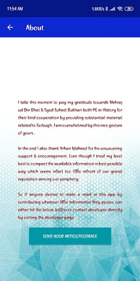 I tried my level best to compact the available information in best possible way which seems infact too little infront of our grand reputation among our periphery. So, if anyone desires to make a mark in this app by contributing whatever little information they posses, kindly contact developer. The developers contact details are available in the app under Developer tab.