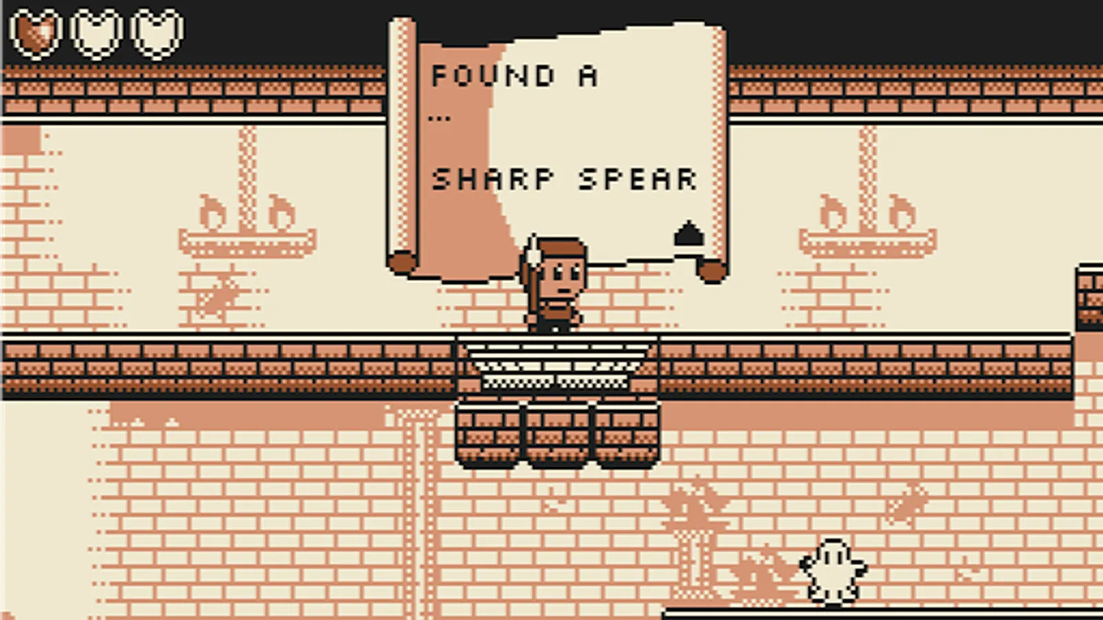 You play as a lone adventurer who seeks to put an end to the threat of the mad wizard. Navigate a challenging dungeon, filled with traps and foes. Use the map that you will pick up early on in order to find various equipment, and use them in turn to traverse the myriad obstacles the tower presents to you. In the tower you will find a spear that will allow you to slay foes and bounce on their heads, a pair of gloves that will allow you so slide down walls and also cling to them and jump from them, and last but not least, a light cloak that will allow you to glide as you fall.