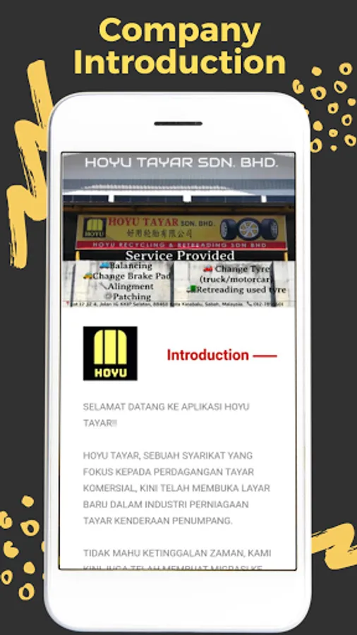 Dengan aplikasi telefon pintar ini, kami akan sentiasa mengemas kini promosi-promosi yang akan giat dilakukan setiap masa. Pada masa yang sama, maklumat-maklumat berkenaan juga akan sentiasa dikemas kini bagi semua pengguna aplikasi Hoyu Tayar ini.