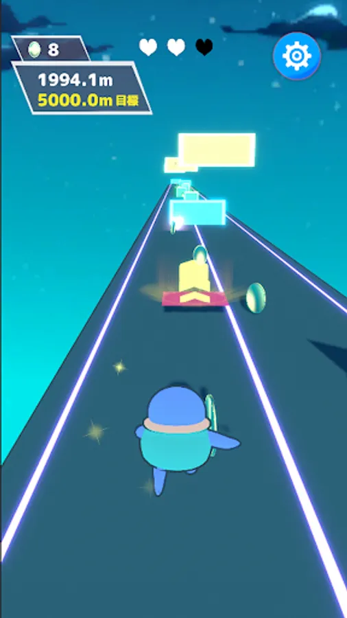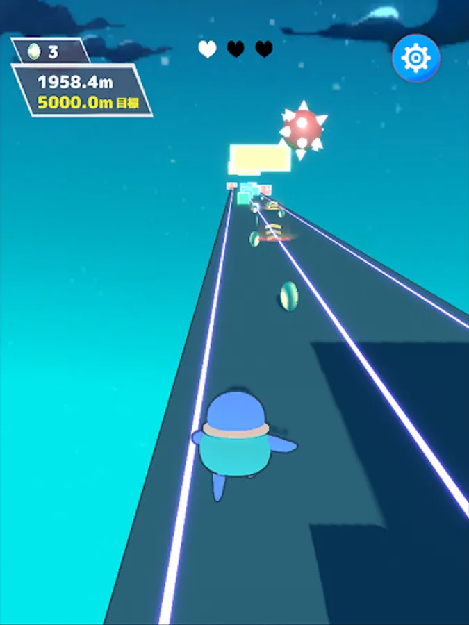 Obstacles on the course will be randomly placed! Use recovery items and jump platforms to keep running longer! You can move while jumping!