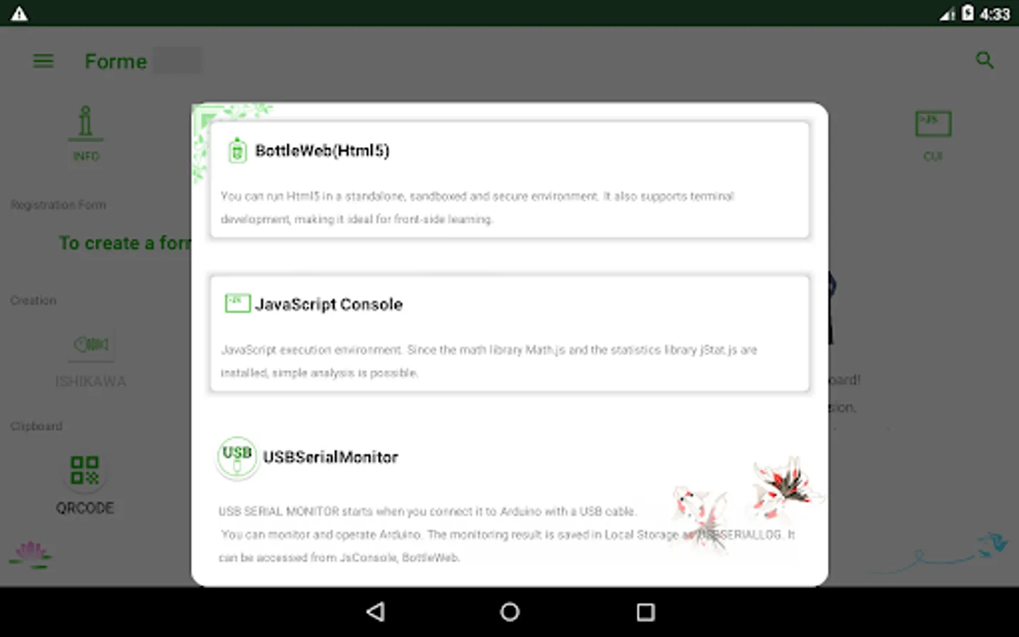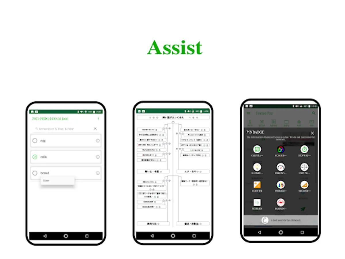 A mini app that you can freely create on your device using the easy-to-create batch-type handy terminal function and front-side technology. In addition, the following functions that are considered necessary for improvement activities are installed. All can be used offline.