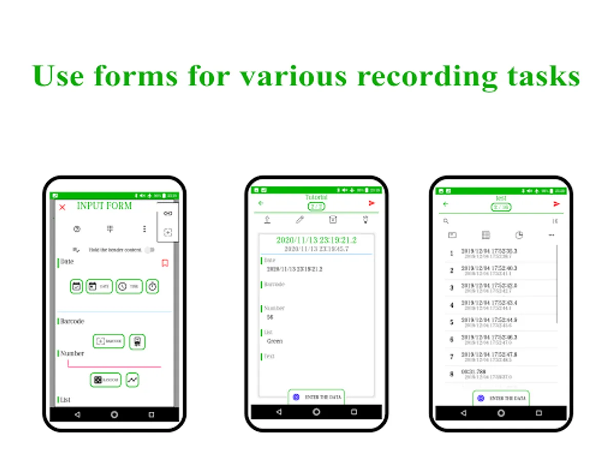 Data input can be done in Forme Go and analyzed with spreadsheet application in smartphone.