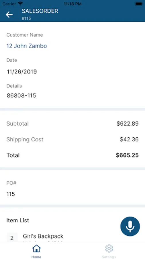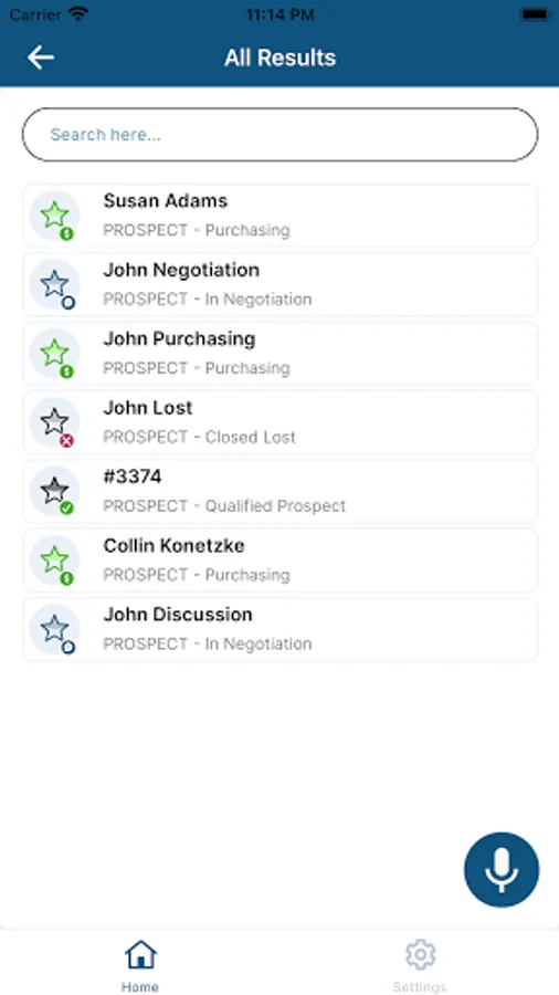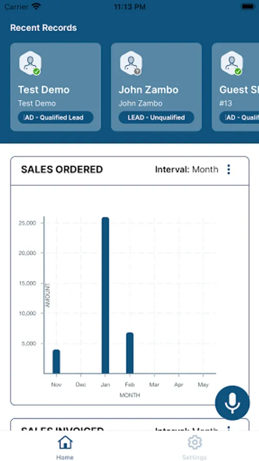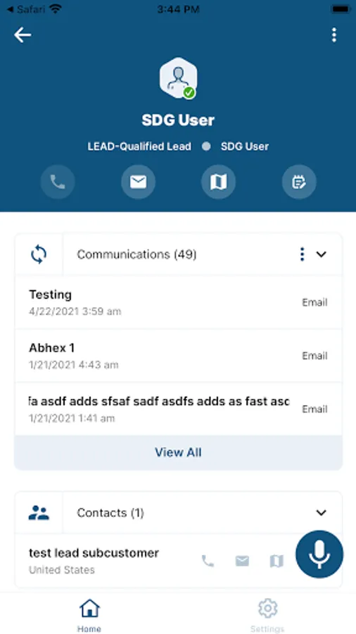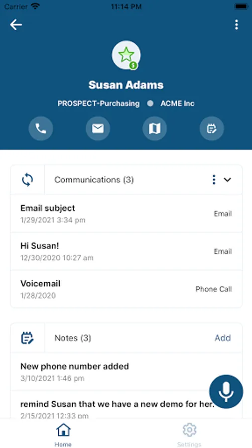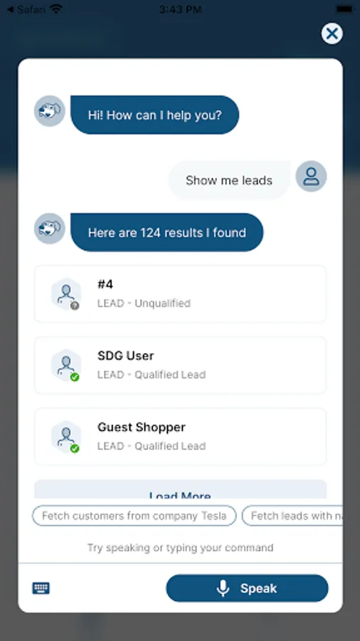 You can request those records using just your voice. For instance, just press the microphone button and say, “Show me customer Miguel.” (You can also type, for those times when you are in a meeting and can’t talk out loud). Suddenly, in scrollable, designed-for-mobile format, you now have a list of all of Miguel’s communication logs, notes, transaction history, and future transactions like estimates or opportunities. It really is that simple! Or say “I want to see contacts named Francis at Company Tesla,” and you will see a list of matching contacts.