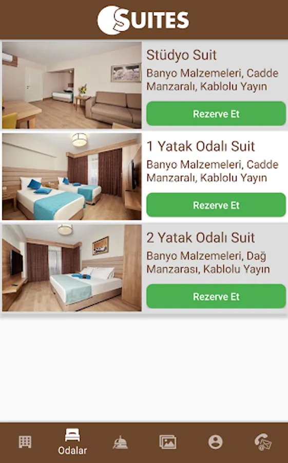 Suites Apart from our hotel is 18 suites, guests will be able to 108-person capacity at the same time. 1 + 1, 2 + 1 options with up to 6 people accommodation suna Un our rooms each with bathroom, kitchen, living area, dining area and desk, LED TVs, air conditioning and free wi-fi access.