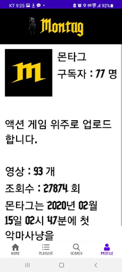 액션게임 고인물 몬타그의 채널 어플리케이션