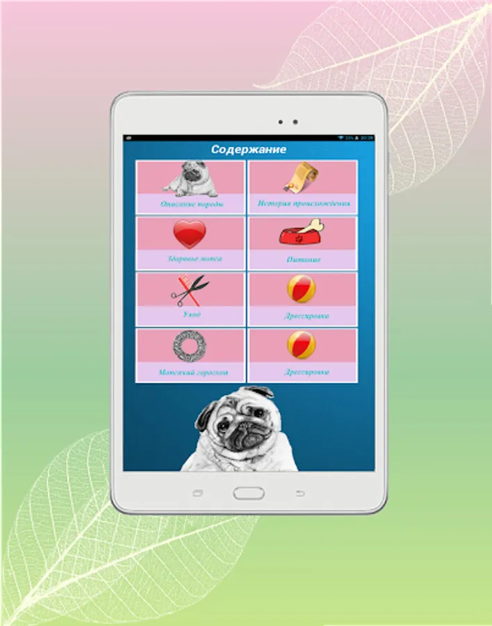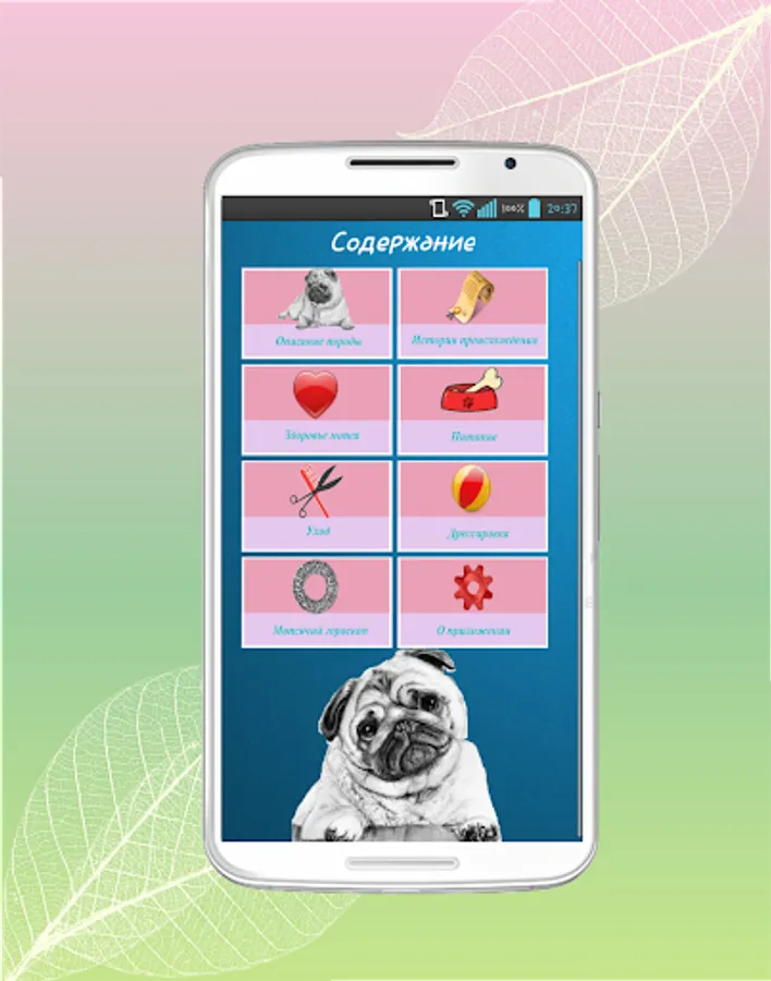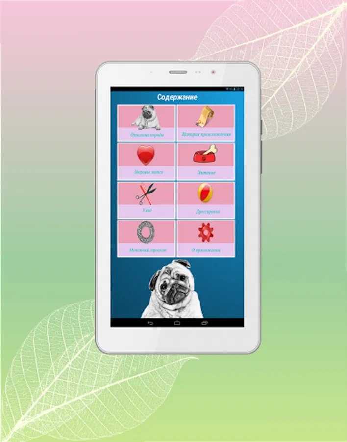 The application combines the answers to most questions related to the peculiarities of care and treatment mopsikom who receive both beginners and avid mopsovod.