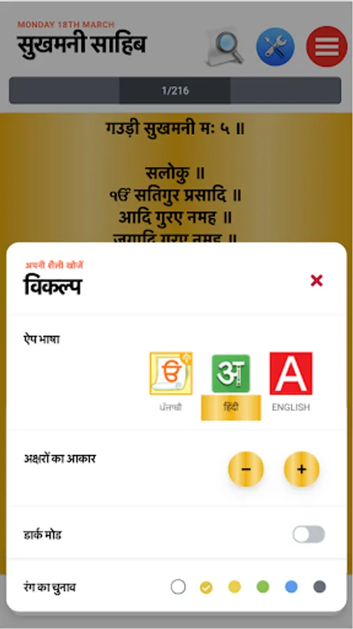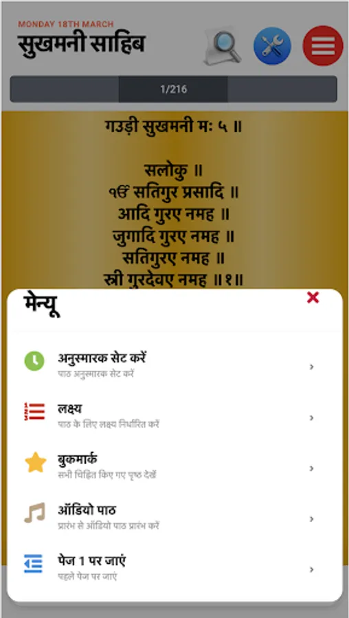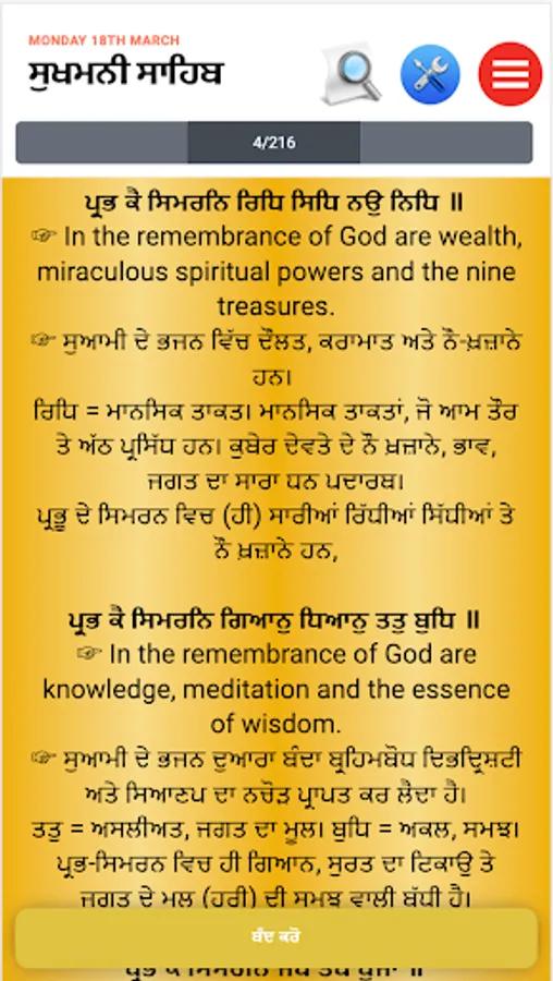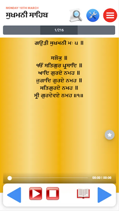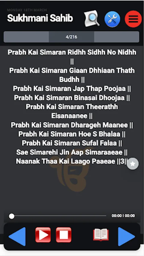'Sukhmani Sahib Path' app let you read and listen to 'Sukhmani Sahib' on your mobile. You can read 'Sukhmani Sahib Path' in Punjabi, Hindi or English and also can read meaning of path while reading or listening to 'Sukhmani Sahib Audio'. Purpose of this app is to let busy and mobile young generation reconnect with Sikhism and Gurubani by reading path on mobile. We hope that you will find this app useful and and will use it daily.