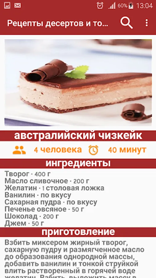 Dessert is the last course of the table, designed to add a pleasant taste at the end of lunch or dinner, usually sweet delicacies such as pancakes, cheesecake.