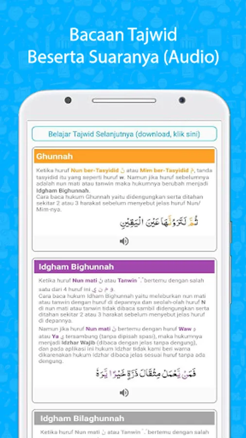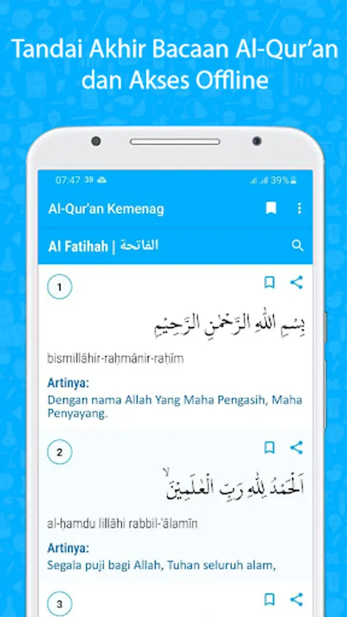 Al Quran application and audio translation along with reading the Koran text from the Ministry of Religion