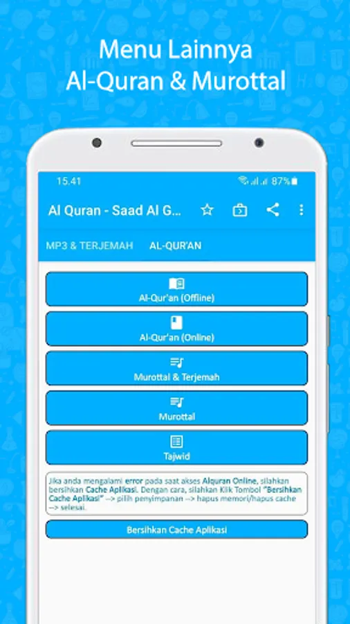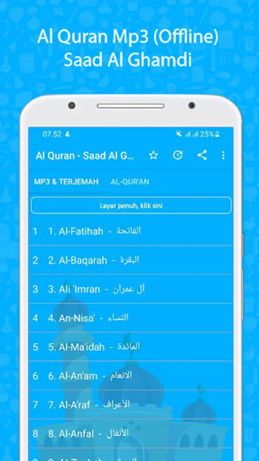 There is a full 30 juz of the Qur'an mp3 accompanied by audio translation with qori Saad Al Ghamdi with a very melodious sound. You can play this app anytime and anywhere, you just have to sit and listen to the chanting of the verses of the Koran accompanied by the translation. let's have it now.