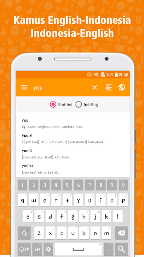 Indonesian English and Indonesian English dictionary applications, can be used offline and are equipped with text to speech features.