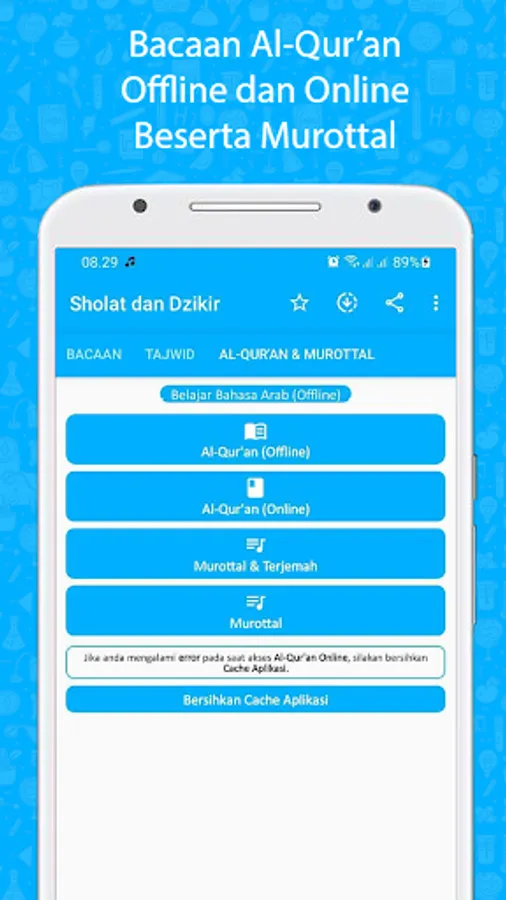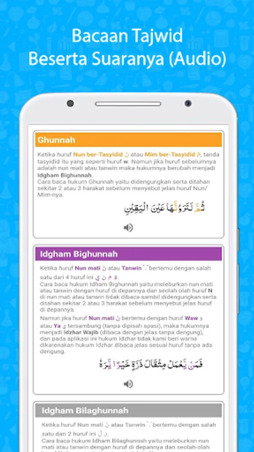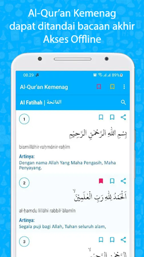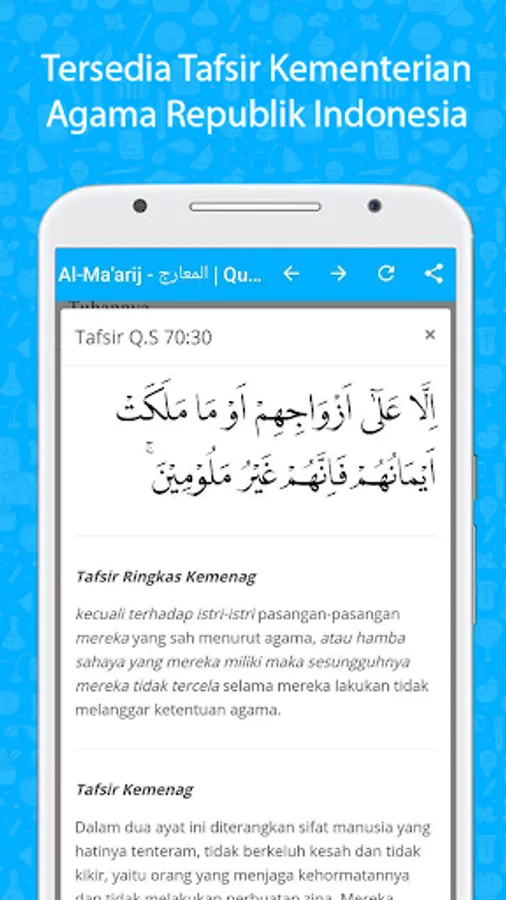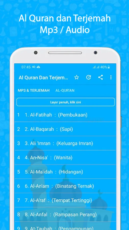 Al Quran application and audio translation along with reading the Koran text from the Ministry of Religion.