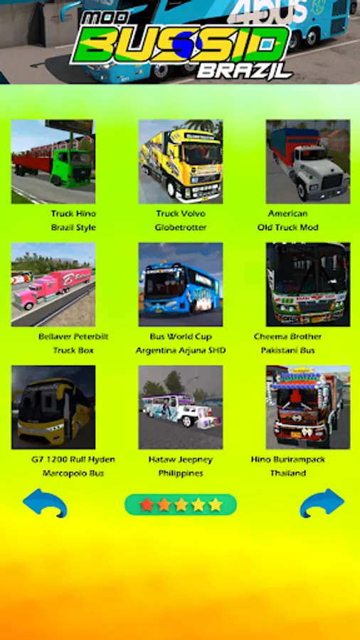This application provides a variety of the latest Brazilian bussid mods and livery. There are various types and types of Brazilian vehicles, starting from the Brazilian bussid truck mod with many variants. Then there is the Brazilian bussid bus mod with a very stunning design. Then there are the cool Brazilian car game models to the cool latest Brazilian motorcycle game models.