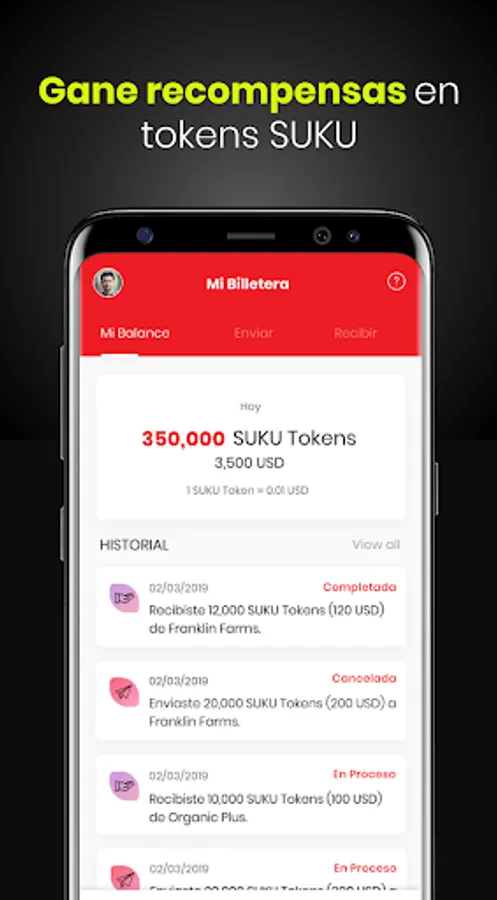 ✔ SUKU Wallet: use SUKU Wallet to send tokens, such as tipping producers and farmers to thank them for a delicious meal
