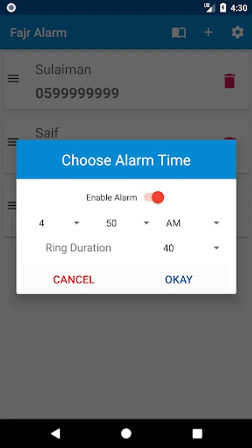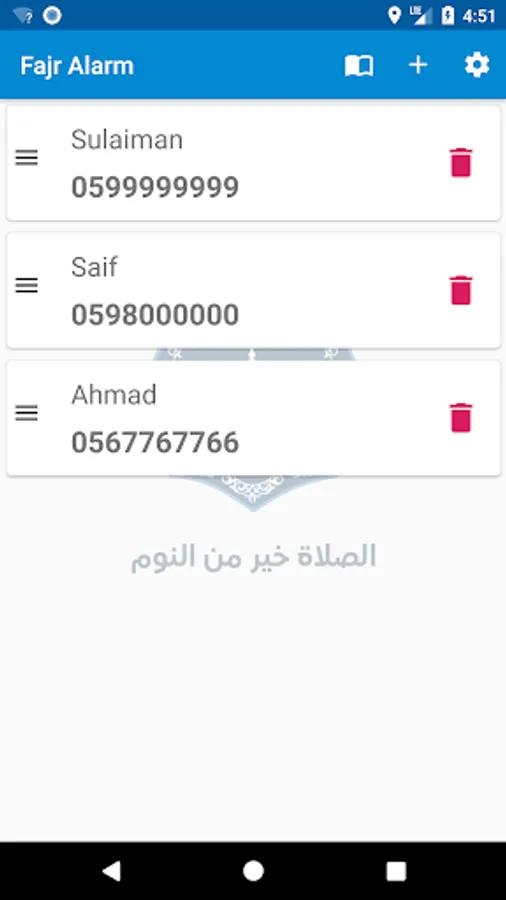 This app allows you to set automatic calls for your friends to remind them to Fajr Prayer