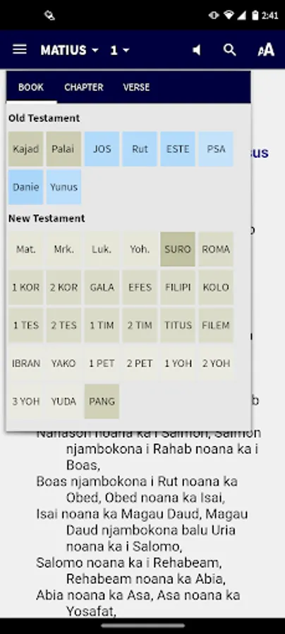 Ini adalah aplikasi Alkitab Bahasa Da’a untuk Android. Versi ini membawa Kejadian, Keluaran dan semua Perjanjian Baru dalam Bahasa Da’a.