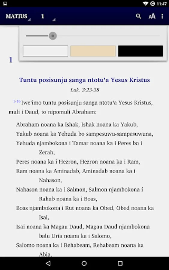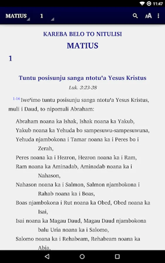 - Jika suka aplikasi kami, silakan kunjungi Facebook kami dengan alamat: https://www.facebook.com/alkitabsulawesi