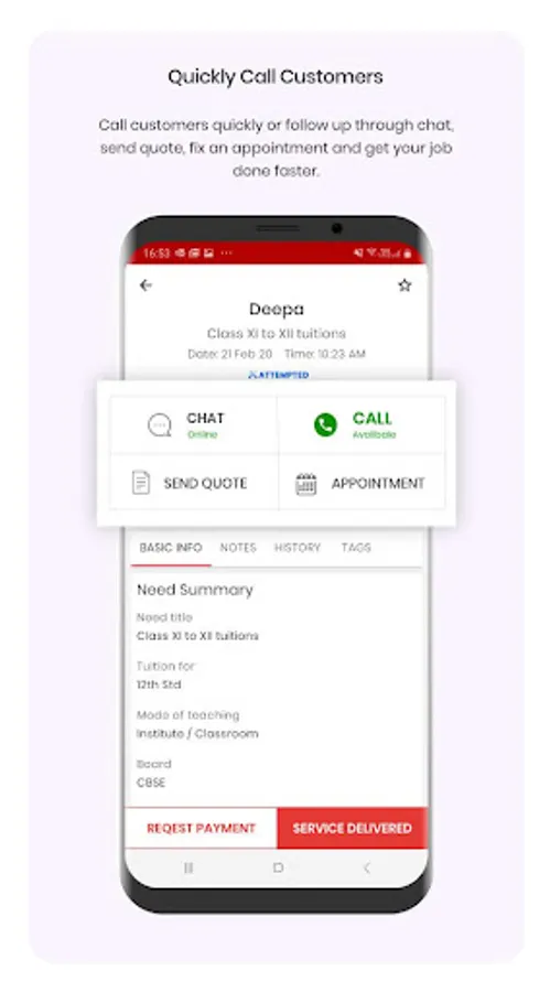 • Real-time push notifications act as your personal reminder so you don’t miss out on quick needs & leads