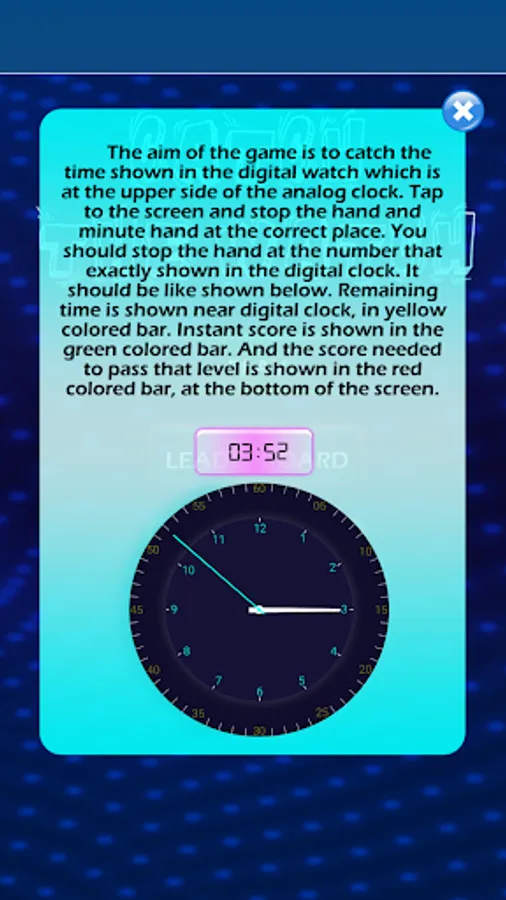 The aim of the game Catch The Watch is to hit the correct time shown in digital watch. Tap to the screen and stop the analog clock's hand and minute hand at the correct place. As the levels progress, the rotational velocities and combinations of hand and minute hand change. Let's measure your reflexes!