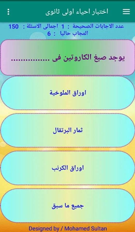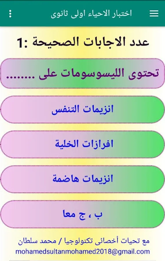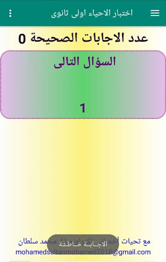 This application concerns the first year secondary students (first term) to train them on the tablet system and the modern system in biology intelligent questions and questions based on understanding students and show the result immediately This program was designed to serve secondary students modern system