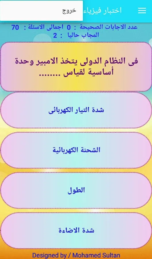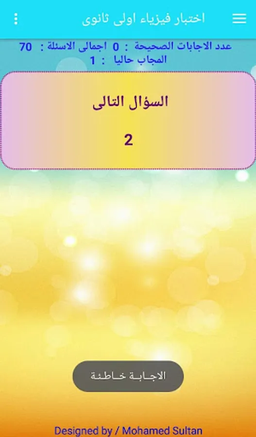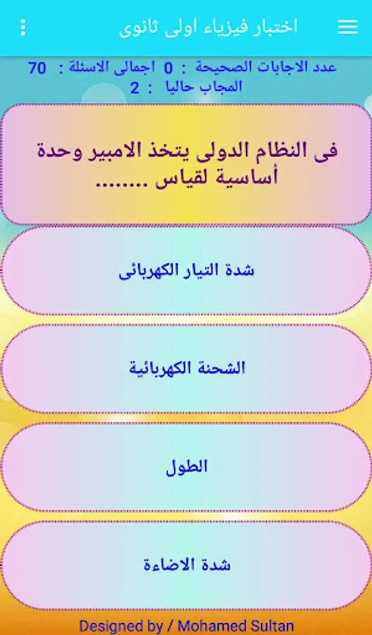 This application belongs to the students of the first grade secondary to train them on the system and the modern system in physics questions intelligence and questions based on understanding students and show the result immediately This program was designed to serve students of high school modern system