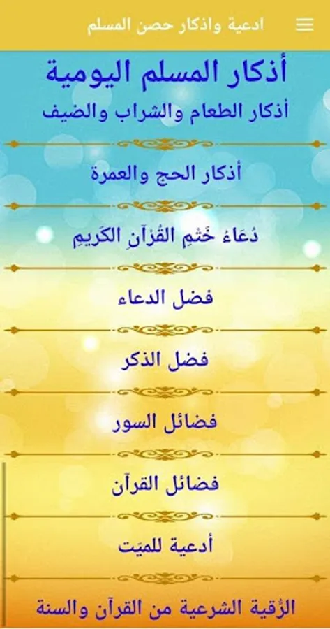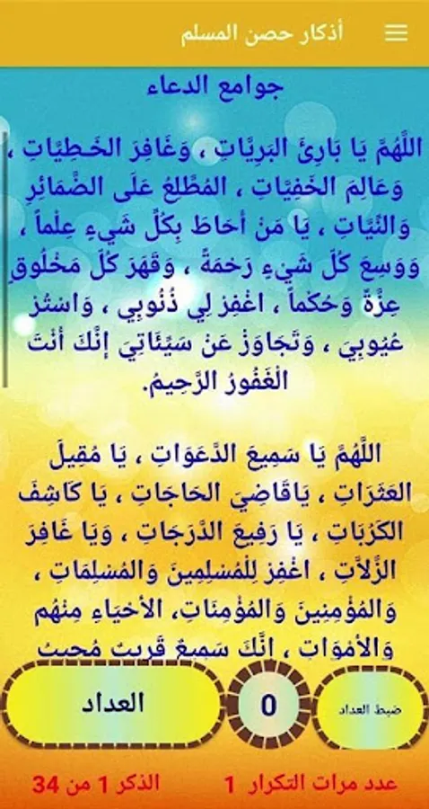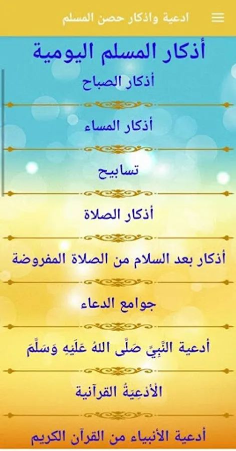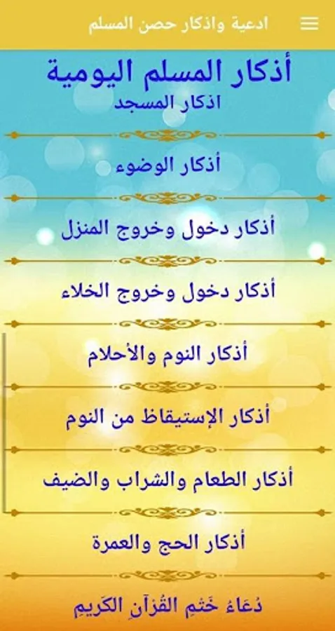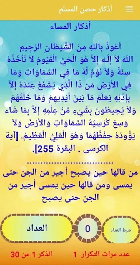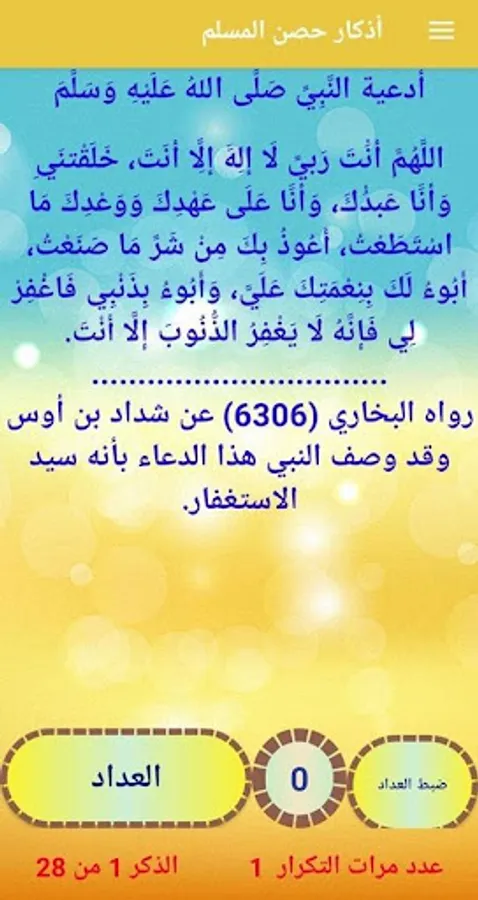 The Hisn Al Muslim program includes many of the dhikr and supplications mentioned in the book, Hisn Al Muslim, which are indispensable in our daily life and in our dealings with people in an easy and simple way.