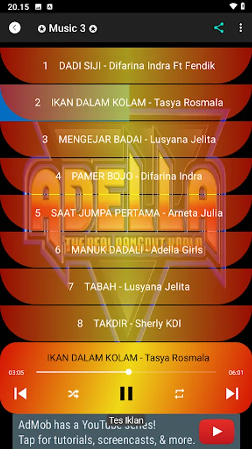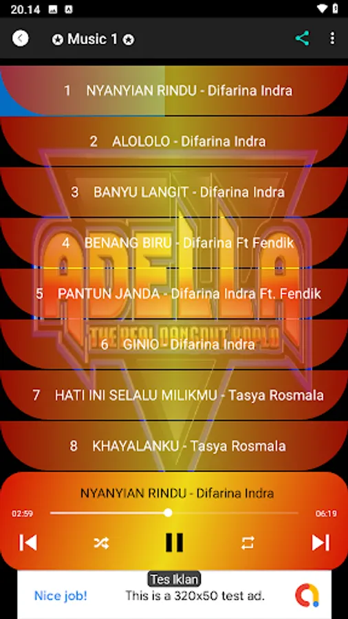 Fill in the songs in the latest offline Koplo Adella dangdut application: