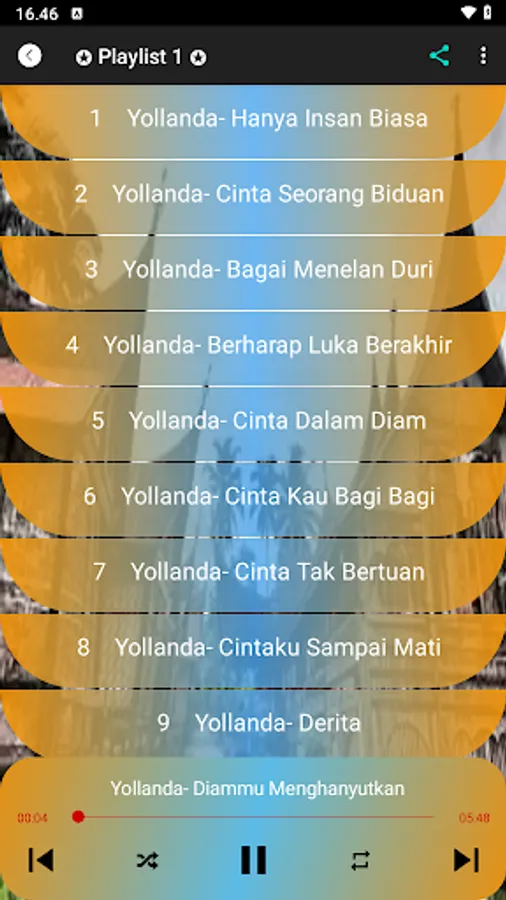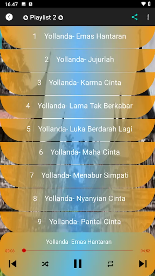 We provide Minang Yollanda pop songs offline 2023 for lovers of full album Minang pop songs, both young and old everywhere. because the offline Yollanda Pop Minang song application is very easy to use and doesn't overload your cellphone's RAM.