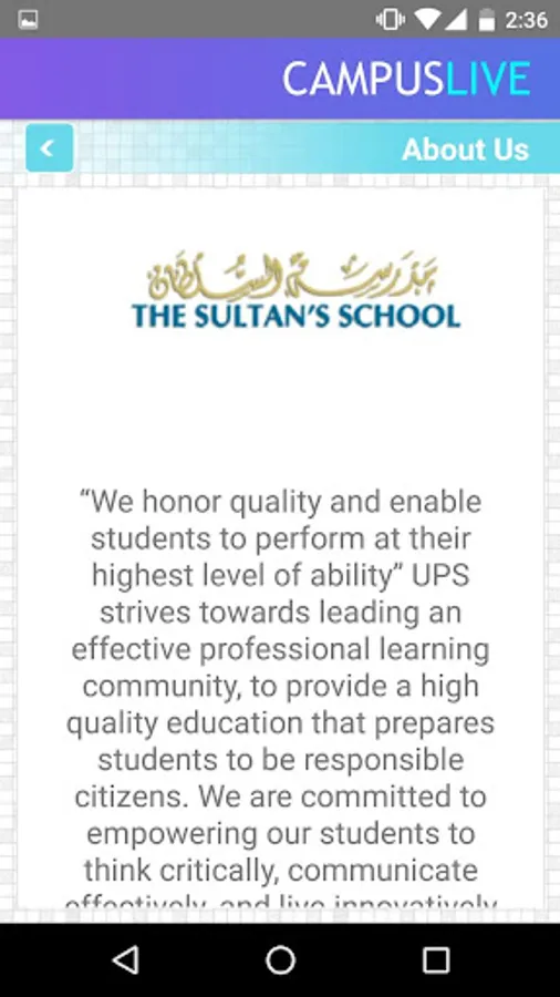 Sultan's School App is exclusively for the schools subscribed to CampusLive™ ®