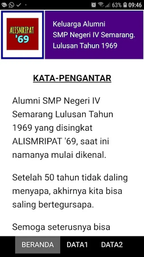 Alumni of Semarang IV Public Middle School IV Year 1969, abbreviated as ALISMRIPAT '69, is now known.
