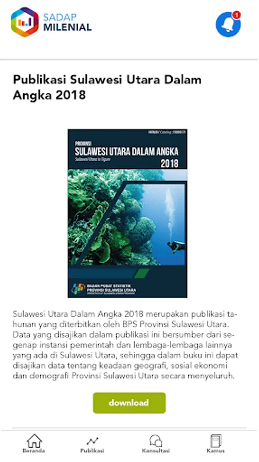 An application that is useful for helping millennials get to know more about statistical data in North Sulawesi Province