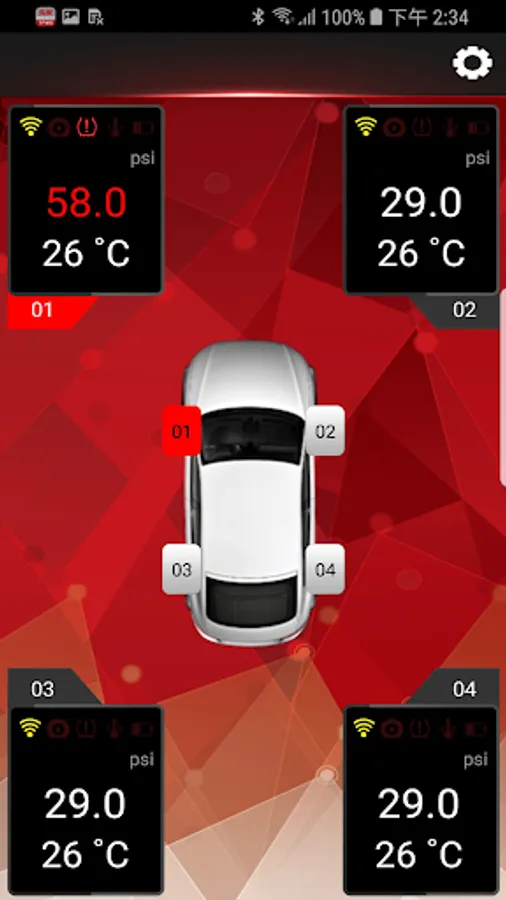The low-power Bluetooth tire pressure monitoring system is designed and developed by System Electronics Industry Co., Ltd., combined with smart phone applications, does not require an external display and wire connection, the driver sits in the car, and can easily monitor multiple tires with the mobile APP. The tire pressure and tire temperature ensure safe driving. When the tire is in an abnormal condition, the phone will immediately inform and alert the driver to know which tire has an abnormal condition.