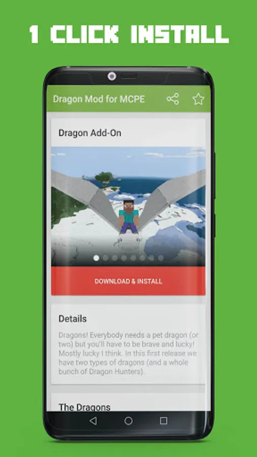 Dragon Mod for Minecraft PE is an application that allowed you to easily download & install Dragon Add-On to Minecraft Pocket Edition game in your Android devices. Thanks to our 1-Click installer that make it super easy to install Minecraft Mods, Addons, Maps, Skins, and Texture Packs.
