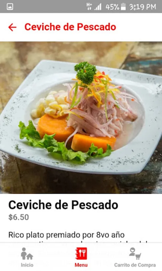 We have from a rich and exquisite ceviche, salted tenderloin, ají de gallina and much more that you can see in our menu, click it, know a little about the dish and request it.