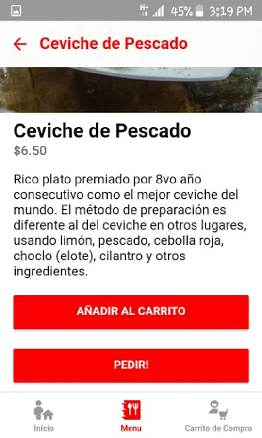The Application for food delivery orders is here, with Sabor a Perú in San Miguel.