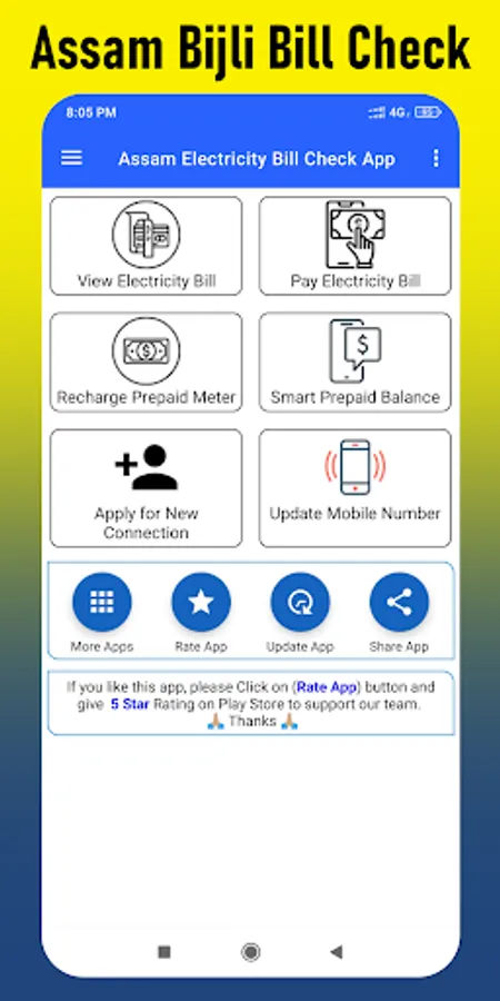 This app is useful for making request for new connection, view electricity bill, pay bijuli bill, Recharge prepaid meter, check smart prepaid balance and update mobile number online at home.