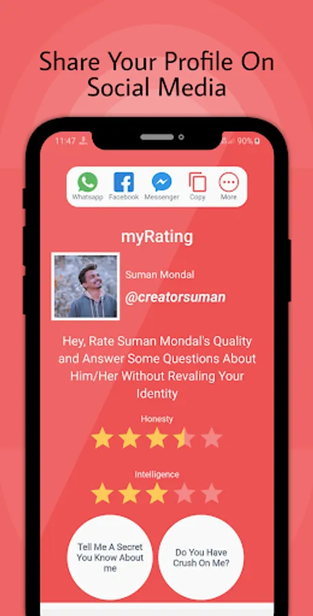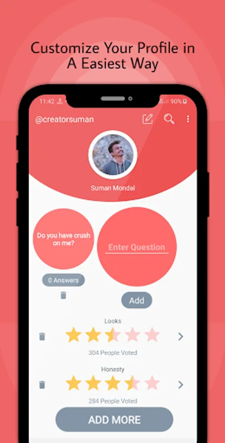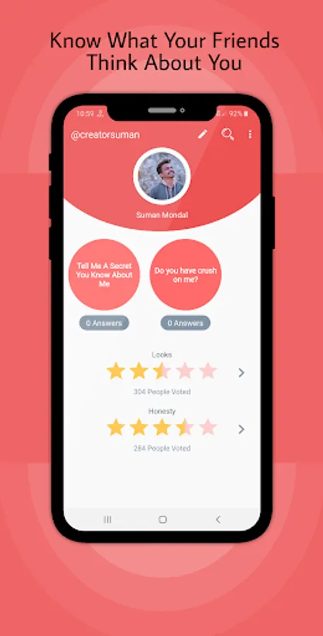 PERSONALIZED: Edit your dashboard like a pro. Add your favourite qualities in your profile and ask your friends to rate it. Add your favourite question and ask your friends to answer it.