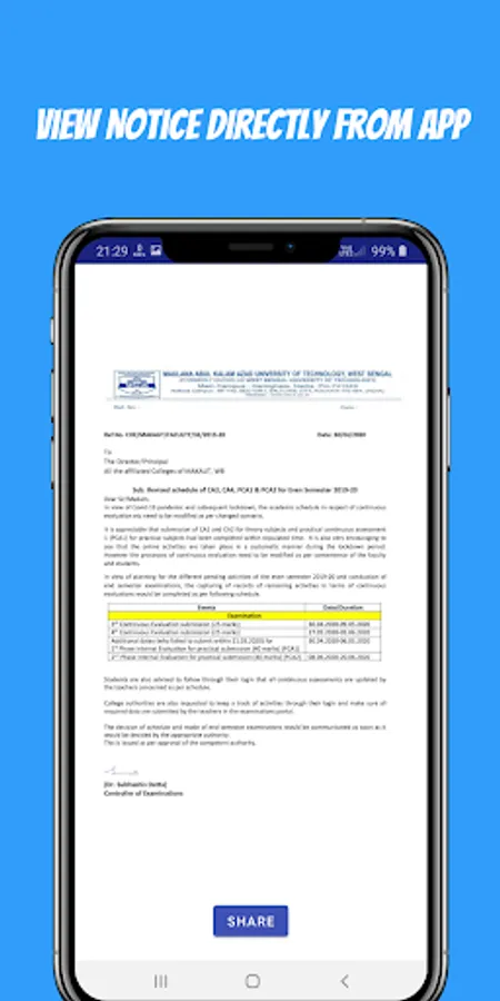 View PDF Directly: You can click on any notice and view the notice directly from app. No need to open another PDF reader app.