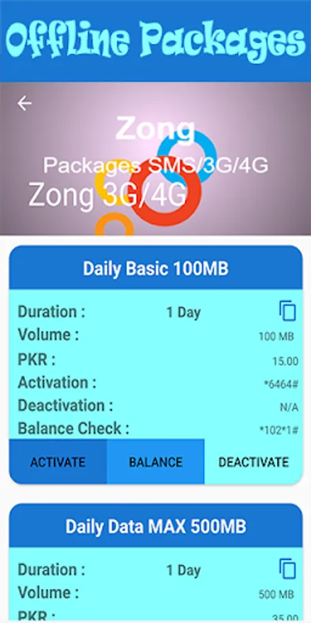 Pakistan's First Offline Packages App for jazz, telenor, zong, ufone and warid packages: