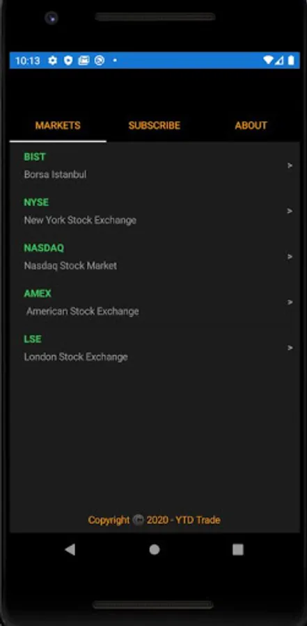 YTD Trade app tracks down all the stocks that are publicly traded in BIST100, NYSE, NASDAQ, AMEX and LSE.