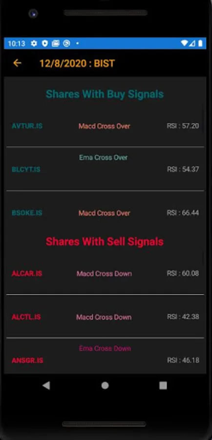 The application is capable of showing the status of each indicator while sharing the RSI value of each stock shortlisted.
