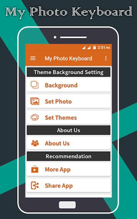 My Photo Keyboard App is tool to customize your android keyboard with beautiful themes.My Photo Keyboard is stunning application you set your own photo as a keyboard background.My Photo Keyboard provides different language,font styles,themes,dictionaries and settings also set different layout for keyboard.