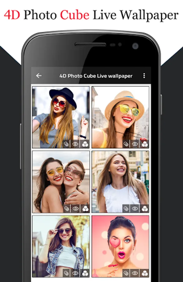 4D photo frame cube live wallpaper have six side and each side you set different photos from gallery.