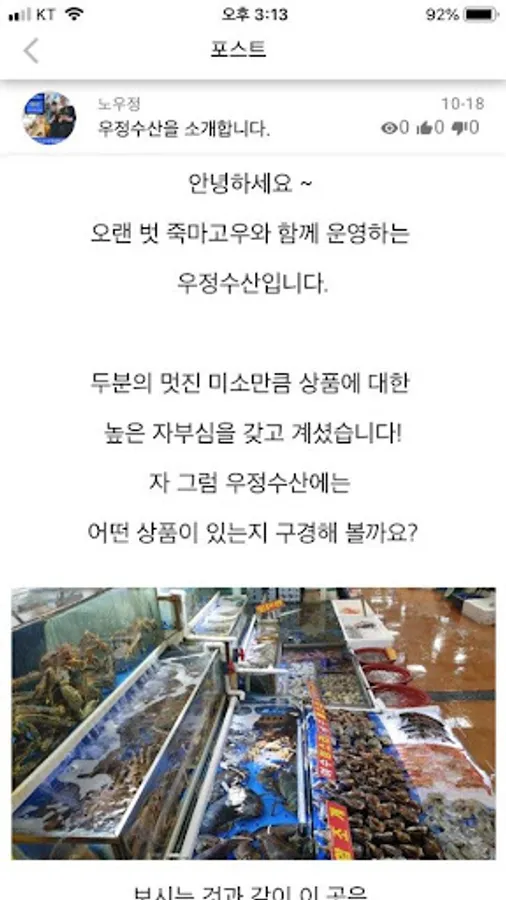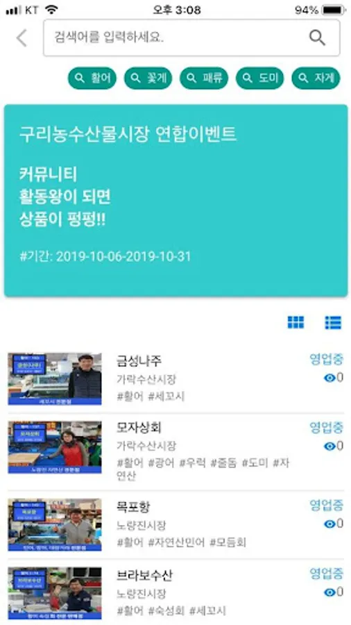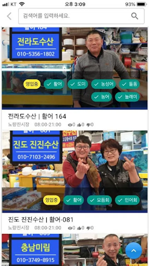 각 상점의 포스팅 글과 리뷰 글에 주목하여 주십시오. 제철 맞은 수산물이 당신을 기다리고 있습니다.