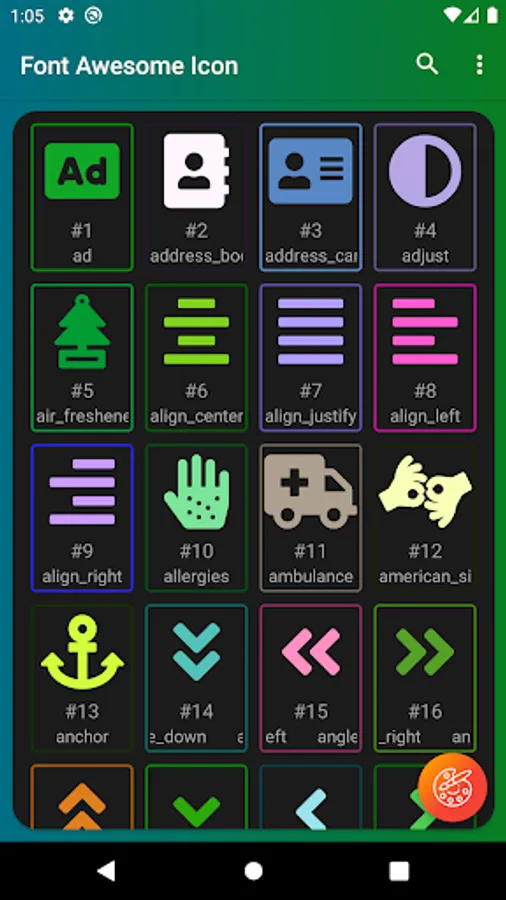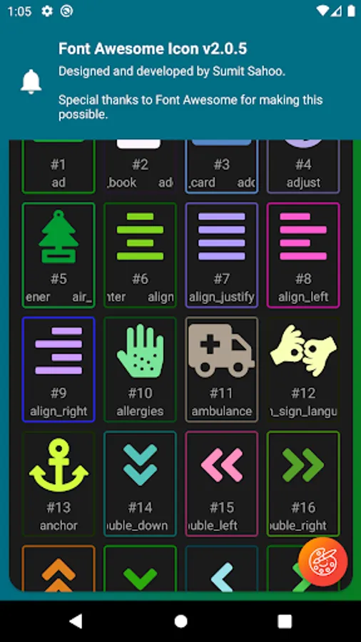 v2.0 is out now which adds support of Font Awesome v5.13. You can browse all the icon sets (995 free icons as of now) and search for the icon you want by tapping on search icon.