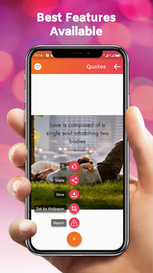 Each quote represents a brook of inspiration, a river of knowledge, and an ocean of motivation. Motivational & Inspirational Quotes is one of the most sought after application that is on a high mission to share a series of knowledge with the whole world. By making use of these Motivational & Inspirational Quotes, you can find awesome quotes that are Flourishing, Awakening, Persevering, Kindling and Uplifting you in myriads of ways. Rest assured, these Motivational & Inspirational Quotes can easily liven your mood and enlighten you up. In short – A simple design, easy to use and the quotes that uplift you.