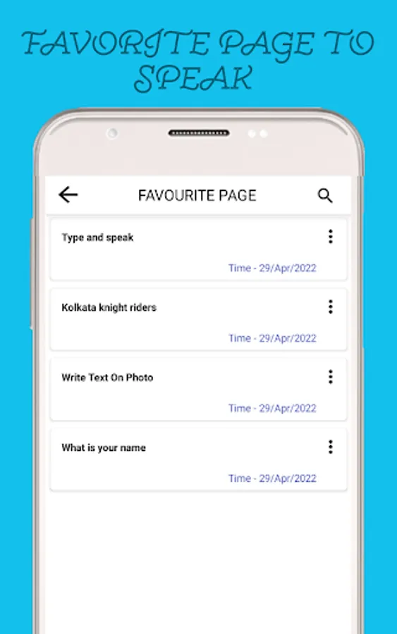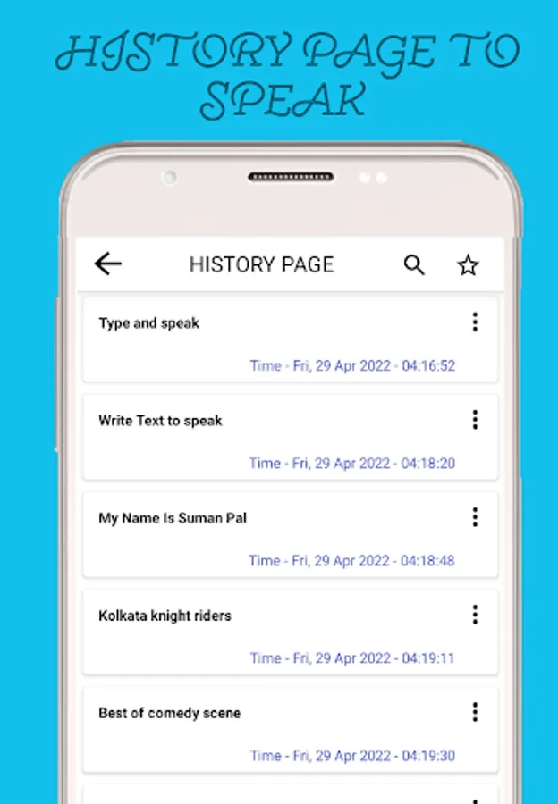 There are many options for Type And Speak: Write text to speech you can see history Page. Also text add Favourites page. And see bin page.