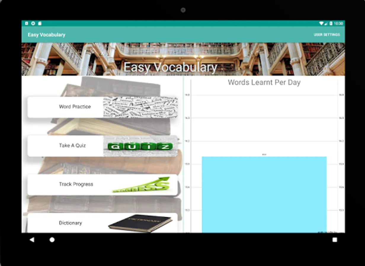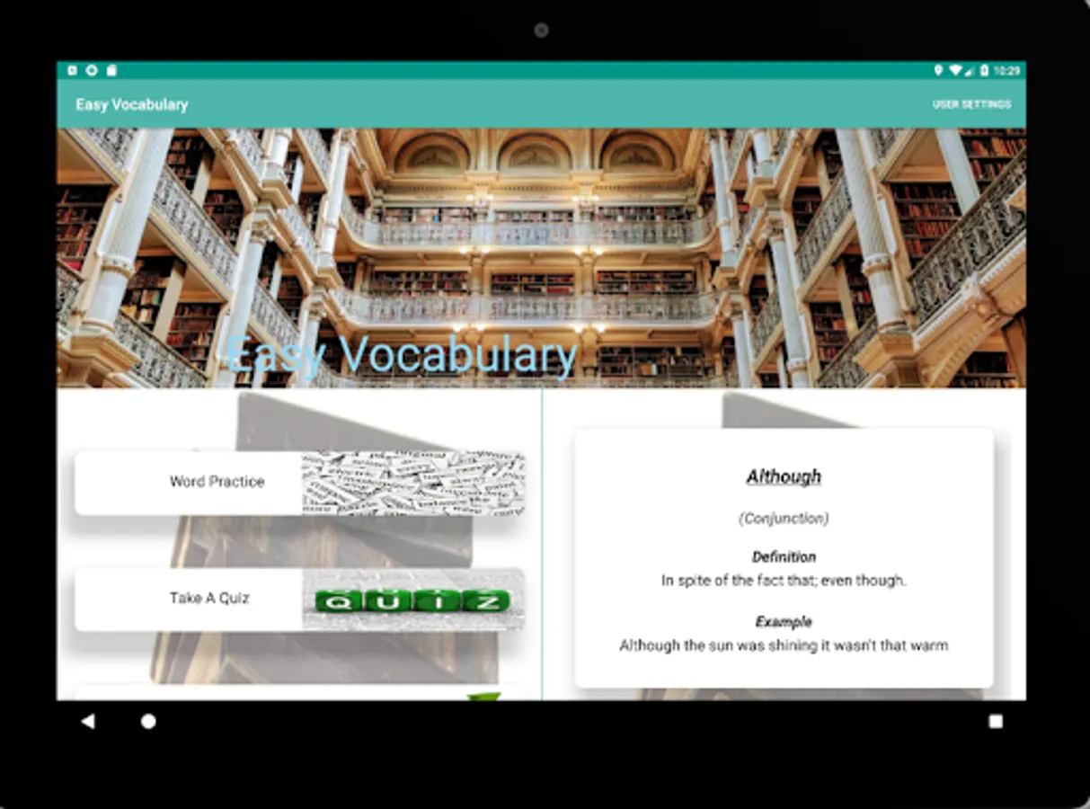 Easy vocabulary is a vocabulary building app. This app is simple and easy to use. You can learn new words every day, take a quiz to see how many words have you learned per day and see the progress report on the number of words learned per day. You can also use it as a general dictionary to search for any word.